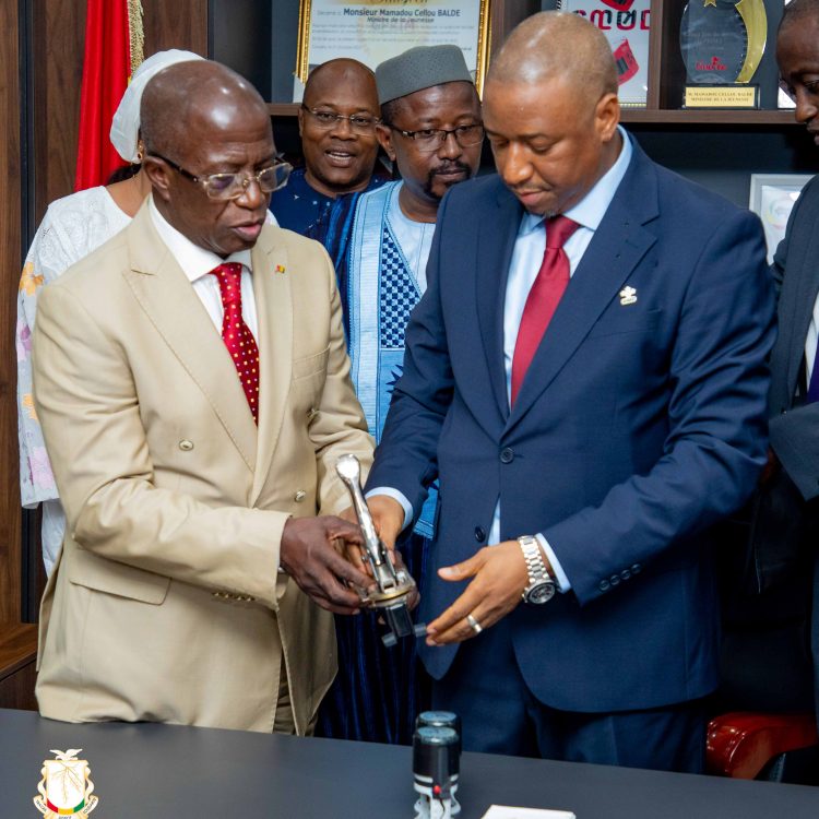 Conakry, 4 février 2026– Le ministre Secrétaire Général du Gouvernement ; Tamba Bénoit Kamano, accompagné du Vérificateur Général, a officié ce mercredi la passation de témoin entre Kéamou Bogola HABA, ministre sortant et Cellou BALDÉ, ministre entrant de la Jeunesse et des Sports.